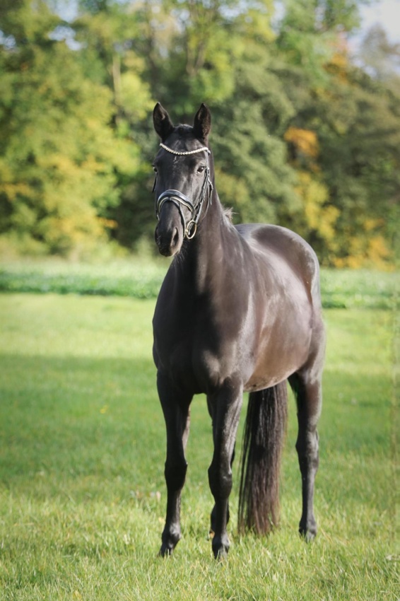 Deelayla von De Niro ist eine elegante Rappstute aus besten Mutterstamm. In ihr vereinen sich die besten Deutschen Dressurblutlinien. Deelayla, im Sport hocherfolgreich, in der Dressur, in Spring- und Geländeprüfungen. Sie zeichnet sich durch ihren top Character aus, den sie auch an ihre Fohlen weitervererbt. Deelayla wird verletzungsbedingt in der Zucht eingesetzt.