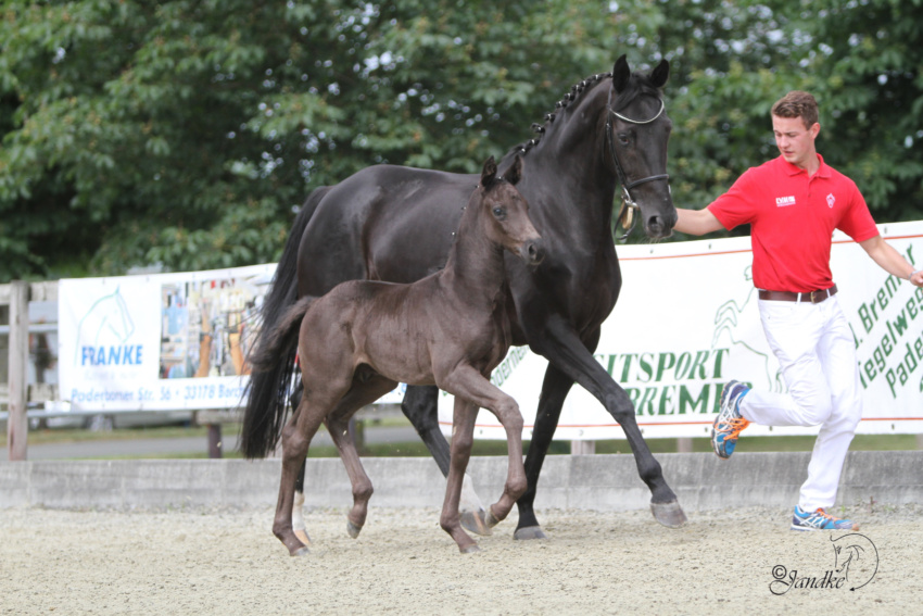 - 2013 bekam sie ein Stutfohlen von Spörken. „Skuderia“ hat 3jährig im Jahr 2016 eine überragende SLP abgelegt und ist 2021 M** platziert.