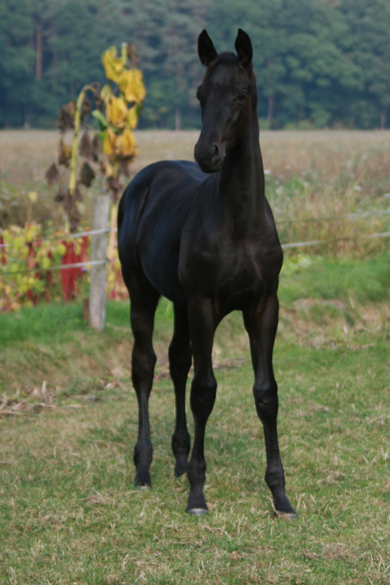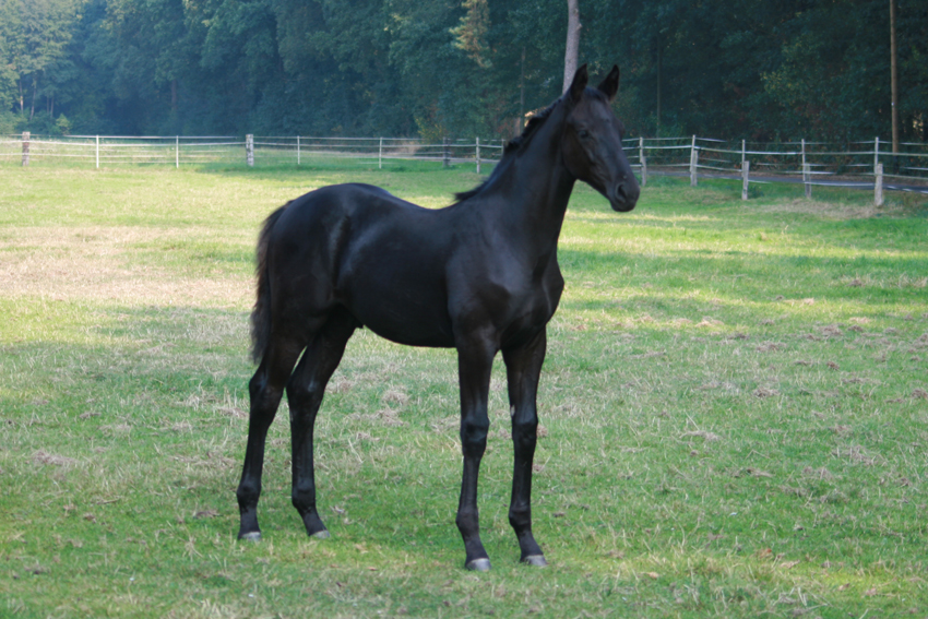 Mit Leichtigkeit konnte dieser, mit außergewöhnlichem Bewegungstalent ausgestattete, wunderschöne Rappe die in Ihn gesetzten Hoffnungen unter dem Sattel bisher erfüllen. Durch seine scheinbar unbegrenzte Elastizität, ständig kraftvoll und gleichzeitig leicht abfußend, weiß dieser Hengst sich hervorragend in Szene zu setzen.