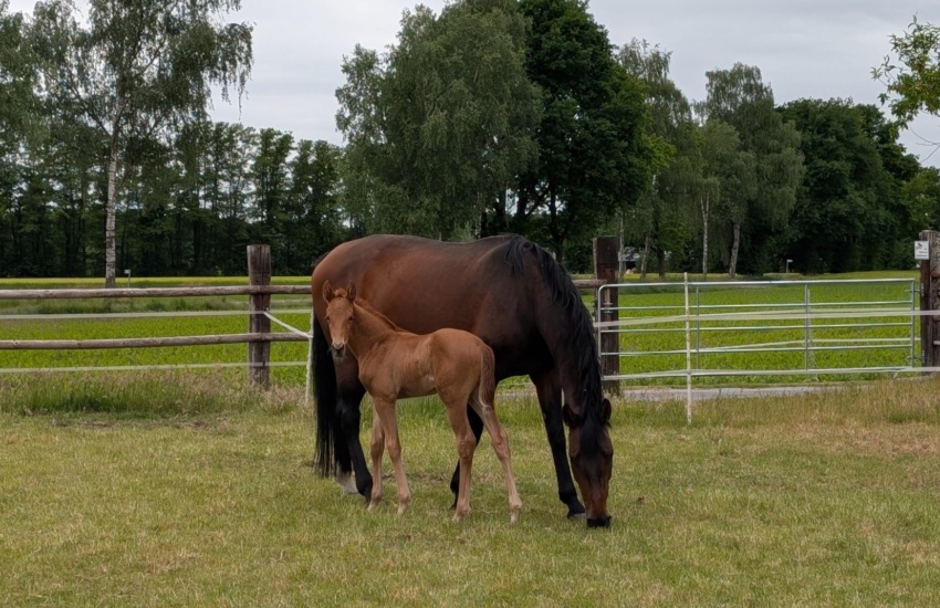 Als krönenden Abschluss ihrer sportlichen Karriere wurde sie von dem Top-Hengst Escamillo besamt – und war sofort tragend! Nun erwarten wir voller Vorfreude ihr Fohlen, das 2025 das Licht der Welt erblicken wird.